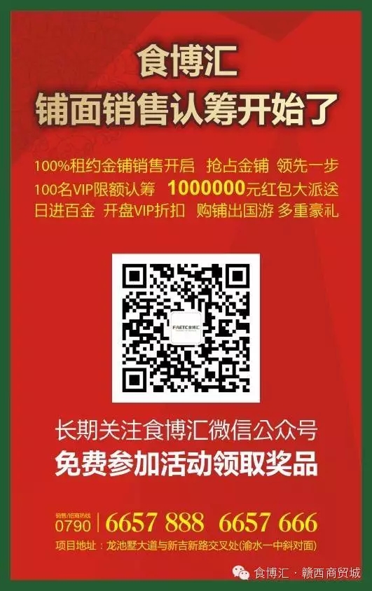 “食博匯,惠天下,聚名優(yōu),保民生”是食博匯矢志不渝的終極愿景,食博匯100%帶租約商鋪認(rèn)籌已正式啟動(dòng),熱切歡迎具有超規(guī)模實(shí)力的品牌代理商,具有投資眼光和經(jīng)營(yíng)實(shí)力的機(jī)構(gòu)和個(gè)人,國(guó)內(nèi)外名優(yōu)品牌食品副食百貨生產(chǎn)商家前來(lái)咨詢投資。