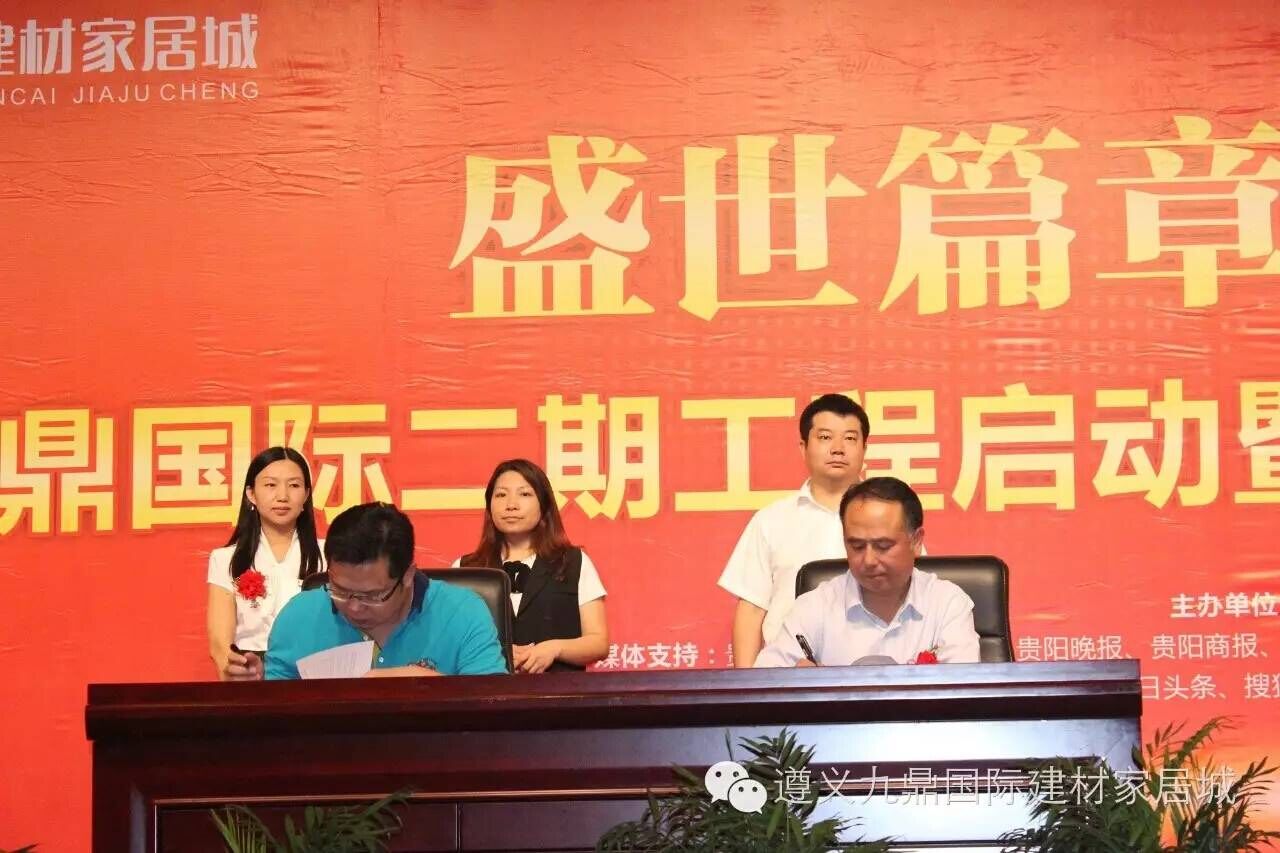 金牌櫥柜、楚楚吊頂、好太太晾衣架、金意陶瓷磚、好萊客衣柜、皇派門業(yè)、玉蘭壁紙、德爾地板、吉柏利吊頂、大自然地板、歐雅壁紙窗簾、愛麗克斯凈水器、友邦集成吊頂、恒潔衛(wèi)浴石峰、顧家家居、慕思寢具、歐麗亞木門、圣世莊園、皮阿諾櫥衣柜、金藝達(dá)燈飾、瑞美恒熱熱水器、阿波羅衛(wèi)浴、富美家居、方太櫥柜、舒適100、馬可波羅瓷磚、蒙拉麗莎瓷磚等近三十家遵義建材家居市場(chǎng)主力商戶與九鼎國(guó)際建材家居城現(xiàn)場(chǎng)簽約,九鼎國(guó)際建材家居城董事長(zhǎng)朱冬林先生為項(xiàng)目方代表,分別與以上品牌商家代表逐一簽約。