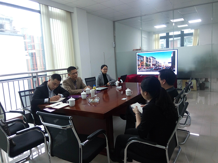 我司總經(jīng)理兼首席策劃師謝金杏先生(左中)與江山多驕國際文旅展貿(mào)城項目副總經(jīng)理魏國富先生(右二)進行深度洽談