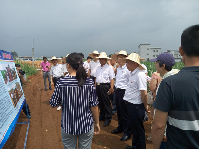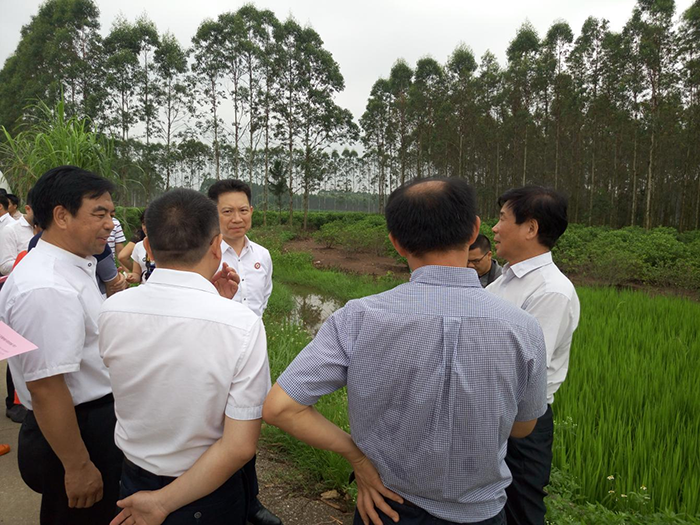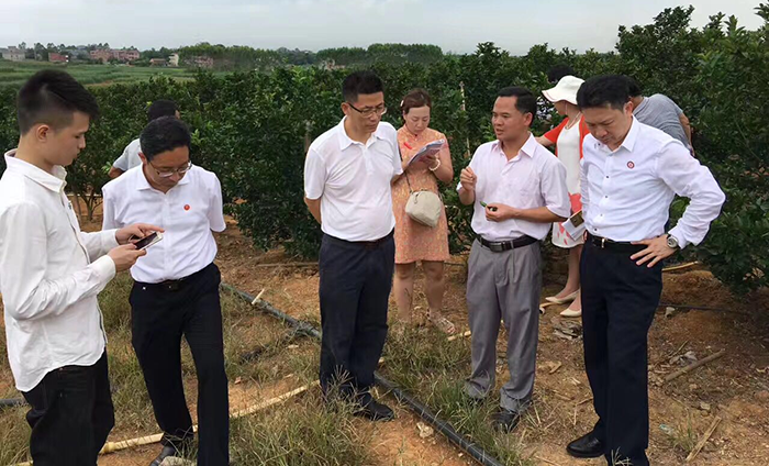 (深圳華錦億爵商業(yè)地產(chǎn)顧問(wèn)機(jī)構(gòu)總策劃師謝金杏先生(左三)、國(guó)家行政學(xué)院政府經(jīng)濟(jì)研究中心副主任研究員、好易農(nóng)科技有限公司董事長(zhǎng)張?jiān)觳┦浚ㄓ乙唬?,深入調(diào)研貴港市種植業(yè)發(fā)展情況)