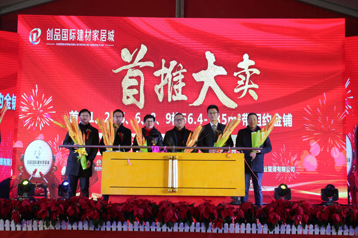 開盤儀式隨著創(chuàng)品國際董事長陳春平先生敲響銅鑼聲中宣布創(chuàng)品國際建材家居城正式開盤。