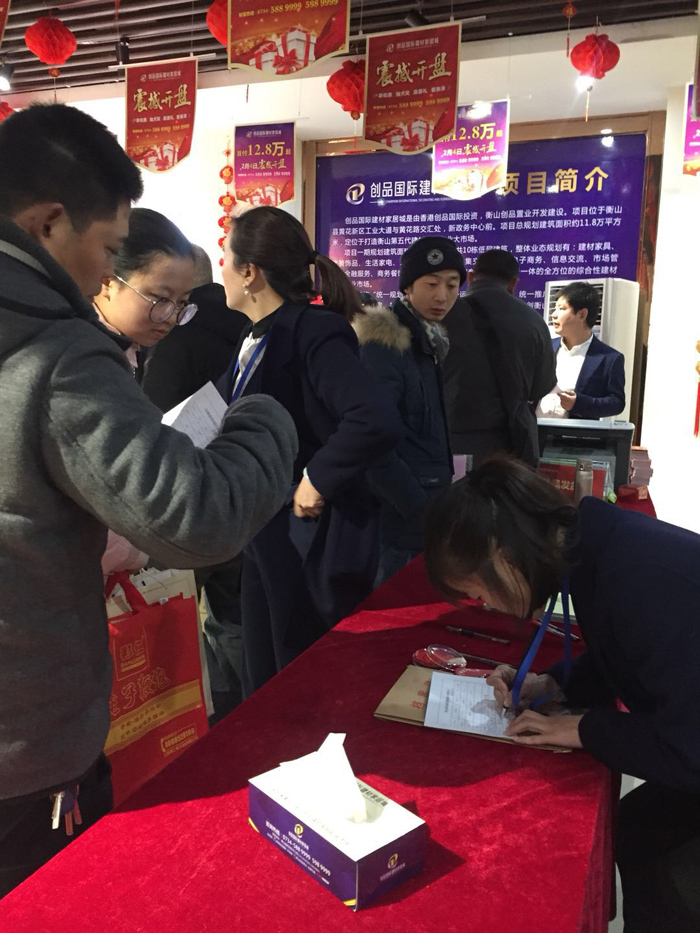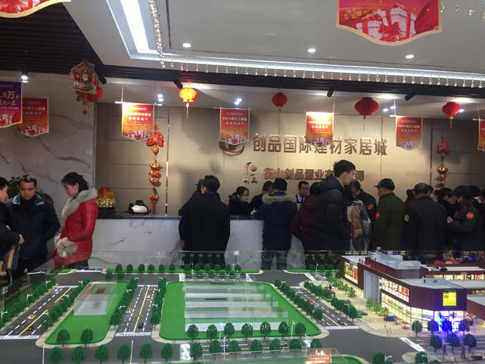 2018年2月4日,立春。創(chuàng)品國際項(xiàng)目一期盛大開盤,現(xiàn)場800余商戶、投資客、新聞媒體齊聚一堂,共同見證衡山首個(gè)建材家居專業(yè)市場開盤這一商業(yè)盛況。