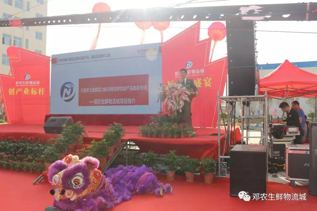 鄧州市食品百貨行業(yè)商會秘書長蔡志磊先生代表鄧州市食品百貨行業(yè)廣大商戶會員發(fā)表講話,對鄧農(nóng)生鮮物流城項目寄與厚望與關(guān)心支持。同時也真切表示商會將積極與鄧農(nóng)生鮮物流城項目達成全方位戰(zhàn)略合作,為鄧州市食品百貨行業(yè)商戶會員搭建優(yōu)質(zhì)的,未來市場有生意保證,有經(jīng)營實力保證的專業(yè)市場平臺。
