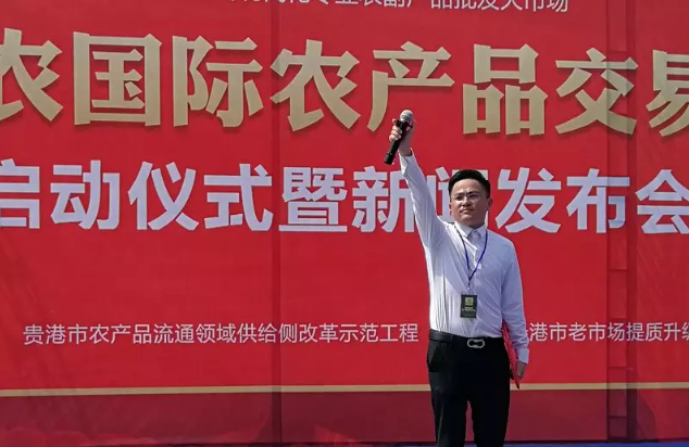 貴港好易農(nóng)科技投資有限公司項(xiàng)目總經(jīng)理鐘聲先生宣布易農(nóng)國際農(nóng)產(chǎn)品交易中心項(xiàng)目一期全面啟