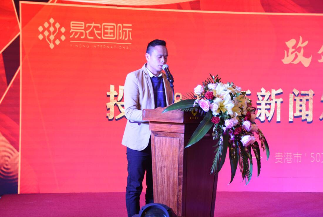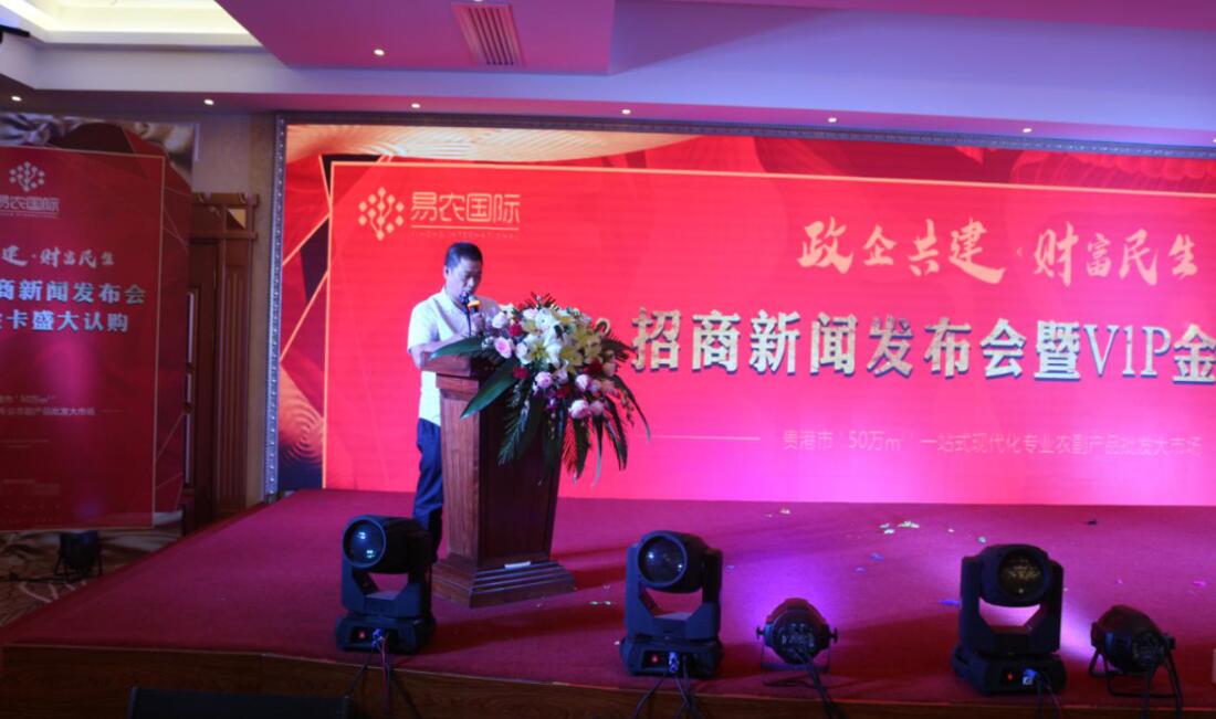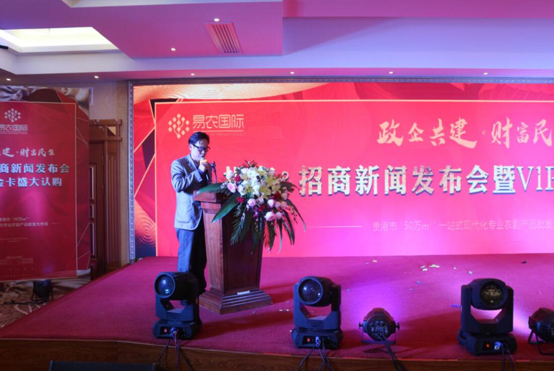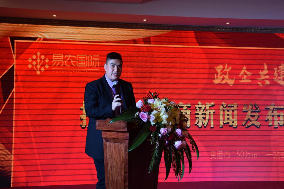 本次投資&招商新聞發(fā)布會(huì)由貴港市好易農(nóng)科技投資有限公司董事總經(jīng)理龐禮華的歡迎致辭拉開(kāi)帷幕,龐總對(duì)本次到場(chǎng)的來(lái)賓表示熱烈的歡迎,對(duì)大家對(duì)易農(nóng)國(guó)際長(zhǎng)期以來(lái)的支持與信賴表達(dá)出真誠(chéng)的感謝!龐總向大會(huì)介紹貴港易農(nóng)國(guó)際農(nóng)產(chǎn)品交易中心是貴港市2017年重點(diǎn)招商引資項(xiàng)目,省市區(qū)三級(jí)重點(diǎn)項(xiàng)目、自治區(qū)“十三五”重點(diǎn)民生工程項(xiàng)目。將致力于打造貴港市“菜籃子、米袋子、果盤(pán)子、油罐子”工程,貴港市農(nóng)產(chǎn)品、食品安全工程,貴港市農(nóng)產(chǎn)品流通領(lǐng)域供給側(cè)改革示范工程,貴港市老市場(chǎng)提質(zhì)升級(jí)承接的大平臺(tái),實(shí)踐“消費(fèi)者、經(jīng)營(yíng)者、投資者、合作者、政府”五方共贏,開(kāi)創(chuàng)貴港農(nóng)產(chǎn)品交易財(cái)富大時(shí)代!