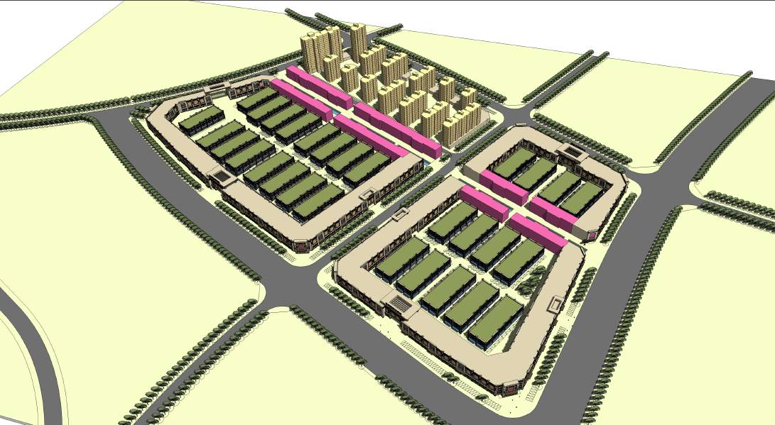 本項目總體布局分三個層次:第一層次為地塊北面緊鄰322國道,商業(yè)價值面最高,建議水泥路左側(cè)緊鄰國道處規(guī)劃箱體式建筑(預(yù)計引進(jìn)主力品牌店紅星美凱龍家具建材賣場);水泥路右側(cè)沿國道處規(guī)劃三層商用物業(yè),一層為臨街通鋪,二、三規(guī)劃商務(wù)酒店、辦公物業(yè)等;第二層次在地塊中間,以專業(yè)市場鋪面及冷庫、大車停車場功能規(guī)劃為主;第三層次為項目地塊東南側(cè),緊鄰山體,自然環(huán)境較好且安靜,規(guī)劃高層居住物業(yè)。