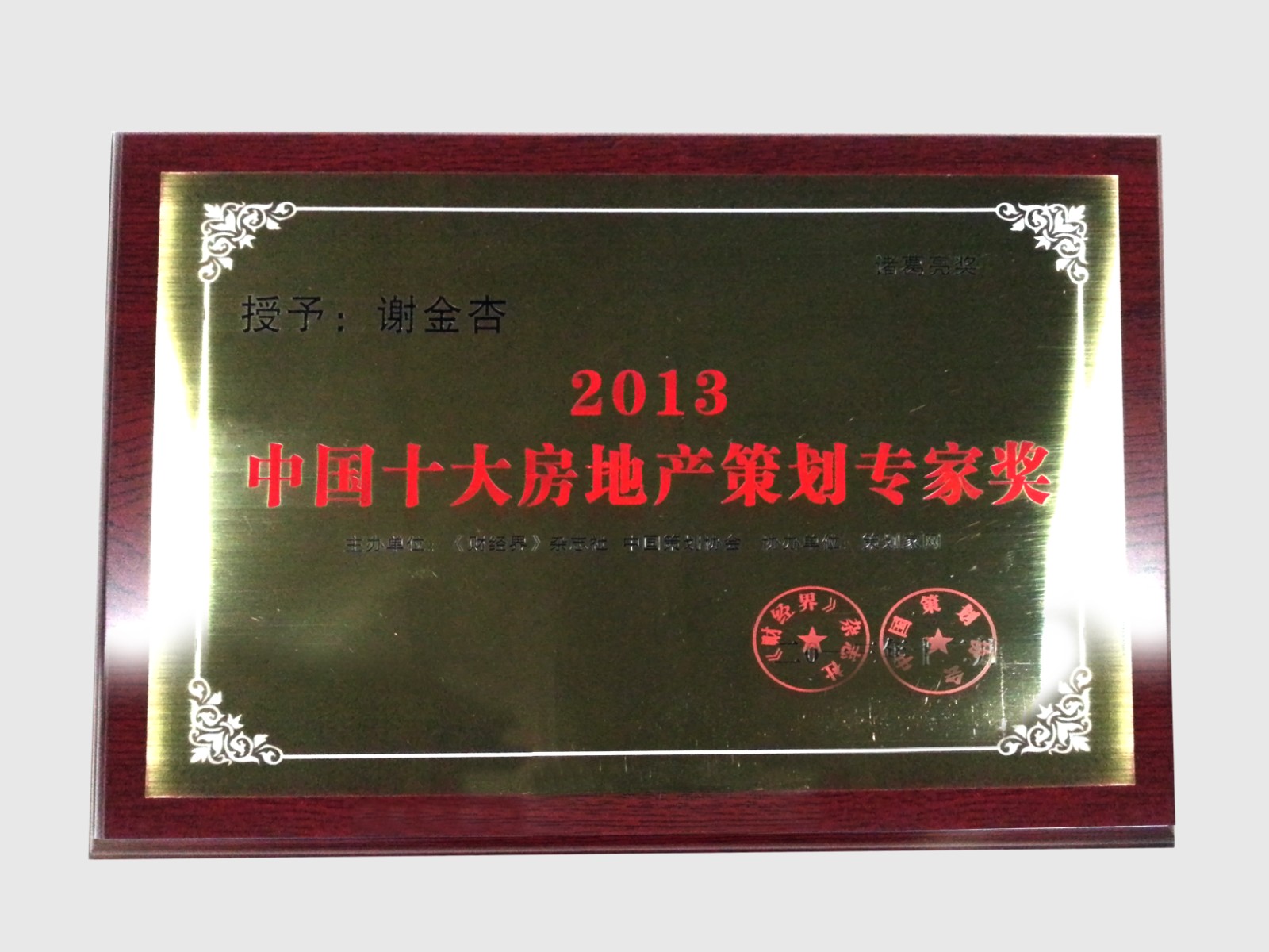 (深圳華錦鴻泰董事長兼總策劃師謝金杏2013年獲得中國十大房地產(chǎn)策劃專家榮譽(yù)稱號)