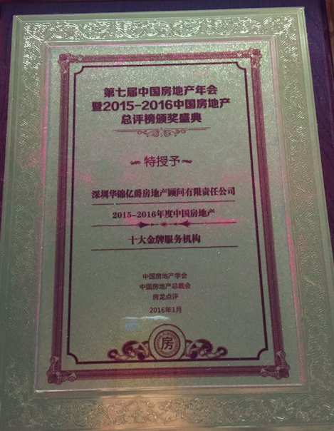 (深圳華錦鴻泰旗下運營機(jī)構(gòu)華錦億爵2016年獲得全國十大金牌服務(wù)機(jī)構(gòu)榮譽(yù)稱號)