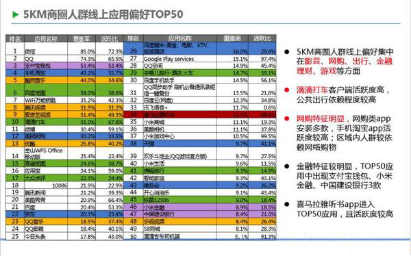商圈人群及競品客群應(yīng)用偏好對比——提升度分析
