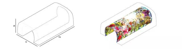 40米。兩個(gè)端頭是透明的玻璃幕墻,頂部是絢麗多彩的繪畫。