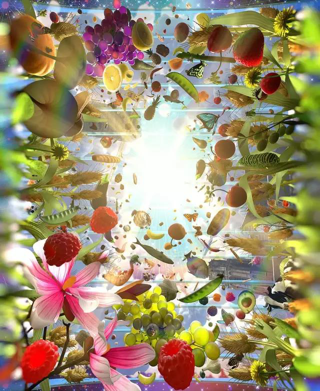 繪畫由鹿特丹藝術(shù)家ArnoCoenen和Iris Roskam合作完成,用PIX的動(dòng)畫軟件,將水果,魚,面包,鮮花與附近的大教堂