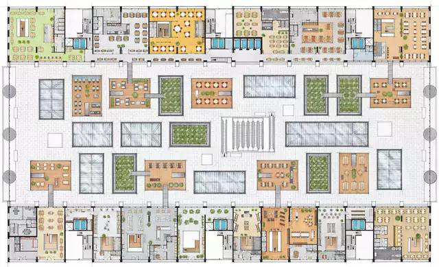 同時(shí),這座拱形的建筑不僅是一座室內(nèi)市場,也是一座容納了228套公寓的大樓。公寓分三部分,出售的公寓中80-140平