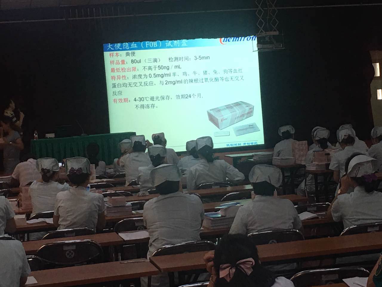 此次講座由上海凱創(chuàng)生物技術有限公司商務部負責專業(yè)培訓,講述POCT膠體金法的技術介紹及我公司的大便隱血檢測試劑盒(膠體金法)的產(chǎn)品介紹、技術原理、檢測原理、操作流程、注意事項、參考范圍等等。